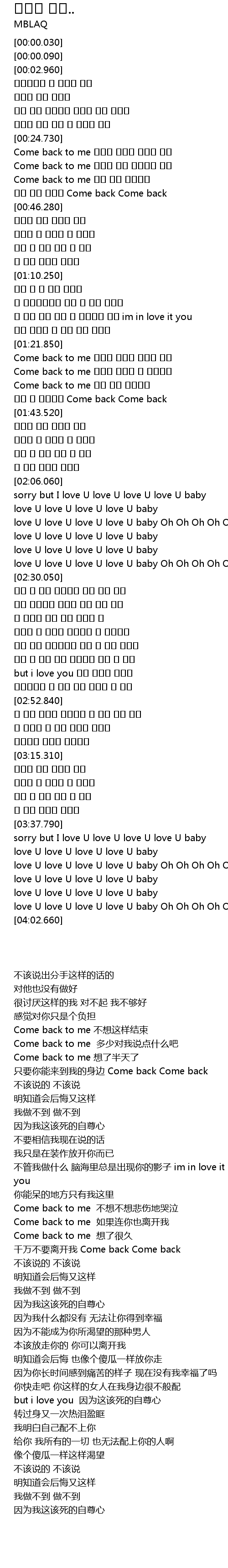 | [01:39.340] | 제발 날 떠나지마 Come back Come back |