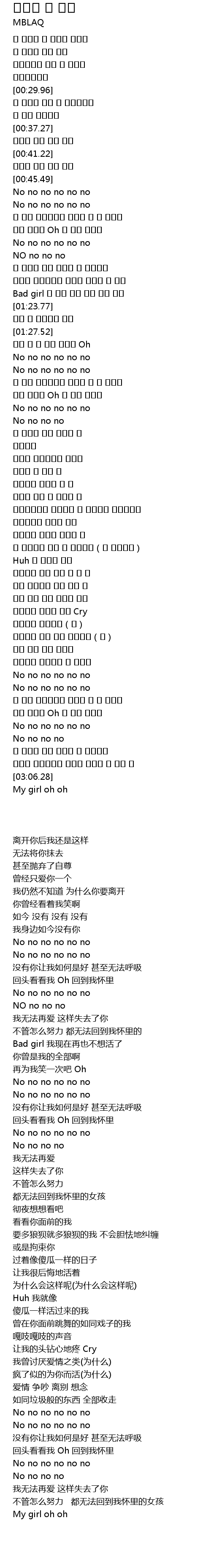 | [01:17.59] | Bad girl 난 이제 더는 살고 싶지 않아 |