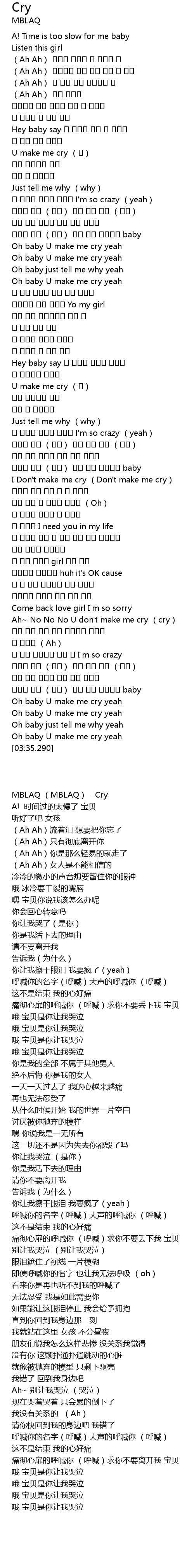| [02:53.280] | Ah No No No U don' t make me cry cry |