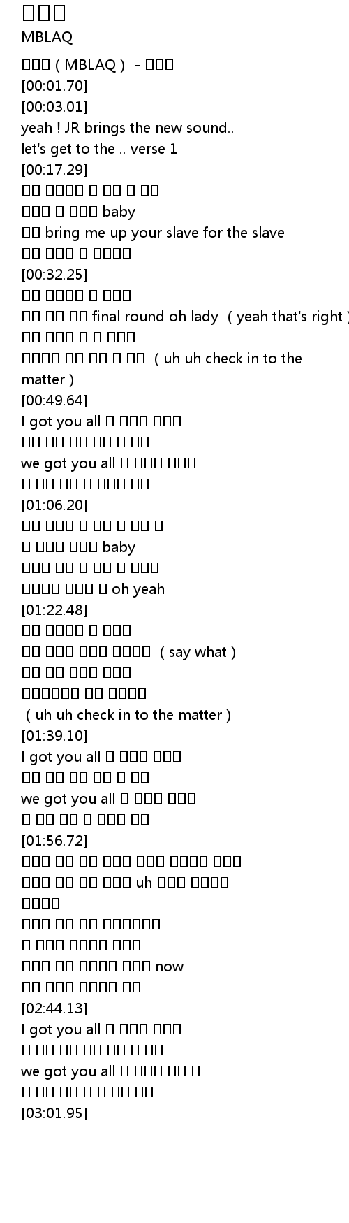 | [00:26.07] | 나를 bring me up your slave for the slave |