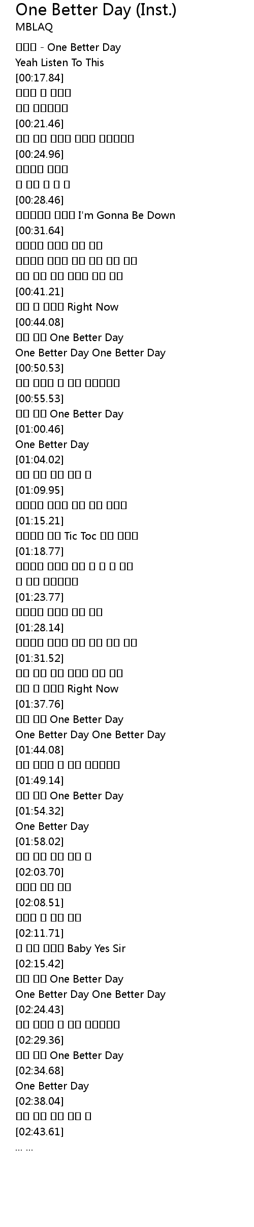 | [01:35.26] | 다시 또 시작해 Right Now |