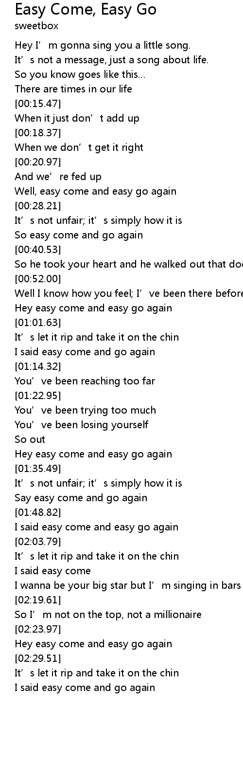 | [00:57.03] | Hey easy come and easy go again |
