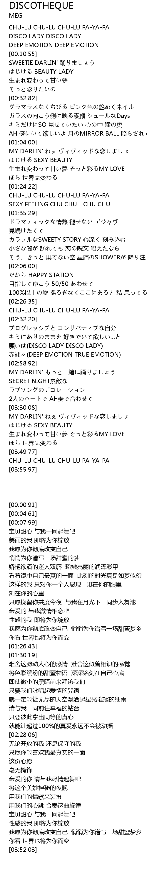 | [01:30.19] | SEXY FEELING CHU CHU... CHU CHU... |