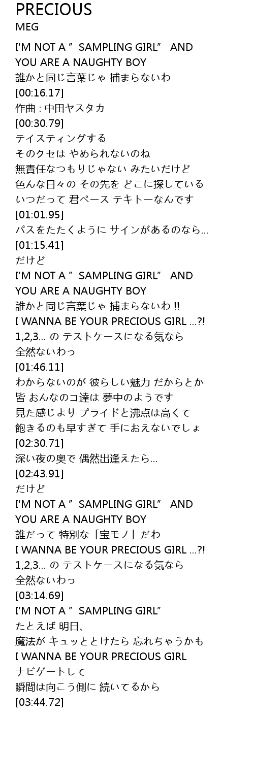 | [03:00.34] | I WANNA BE YOUR PRECIOUS GIRL ...?! |