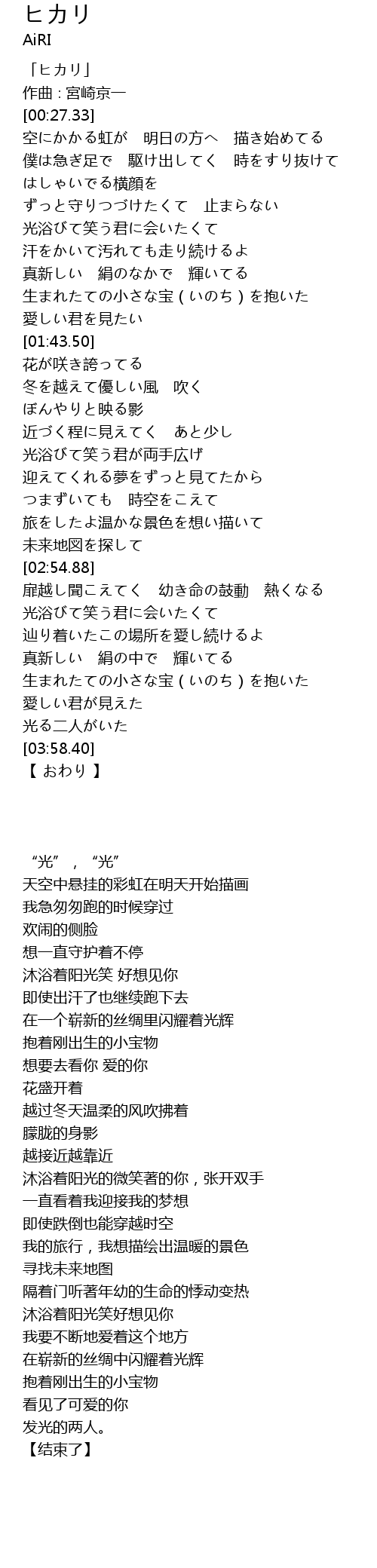 | [03:41.05] | 生まれたての小さな宝(いのち)を抱いた |
