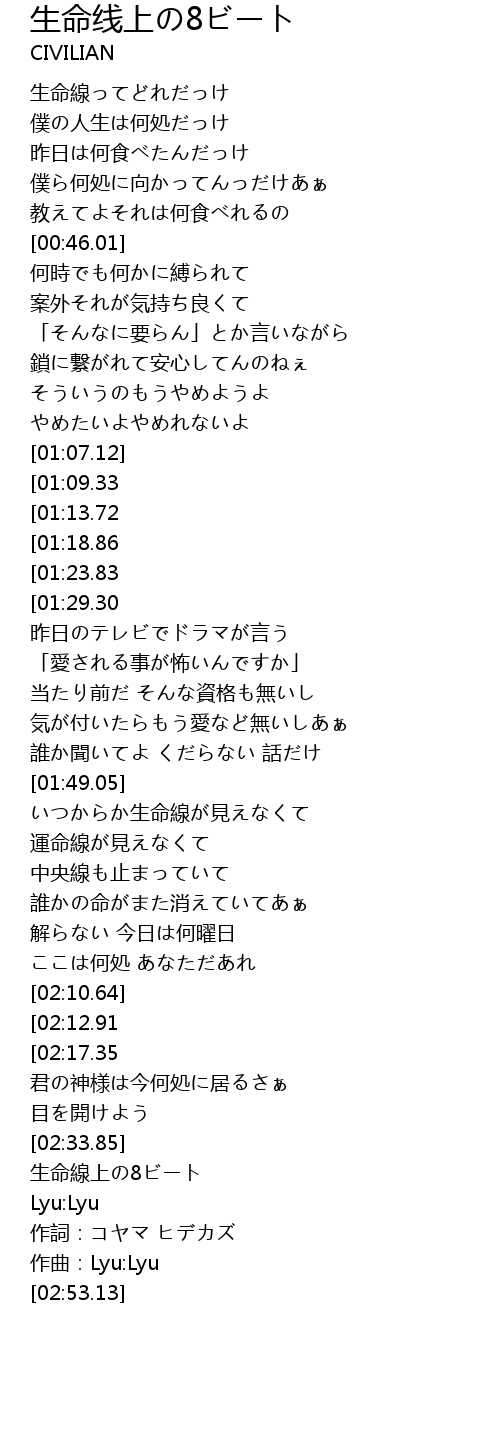 | [01:57.36] | 誰かの命がまた消えていてあぁ |