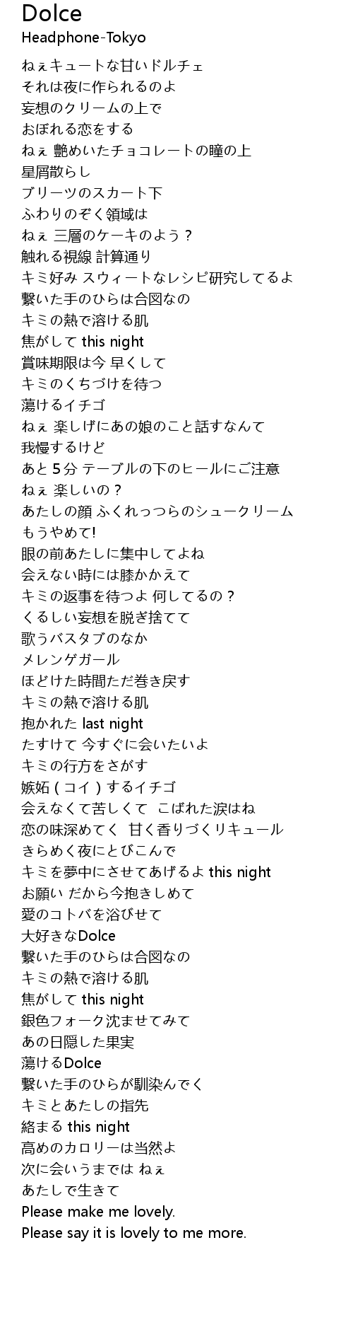 | [00:14.300] | ねぇキュートな甘いドルチェ |