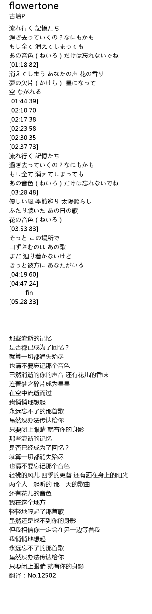 | [03:48.33] | 花の音色(ねいろ) |