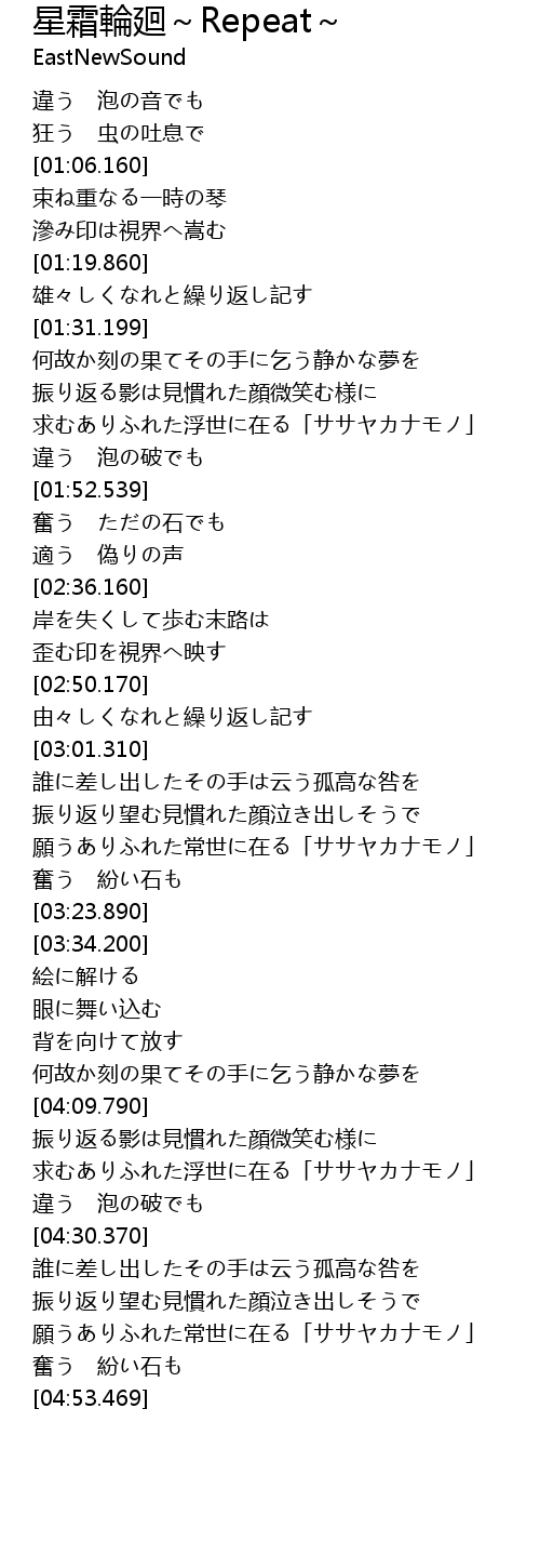 | [04:20.409] | 求むありふれた浮世に在る「ササヤカナモノ」 |