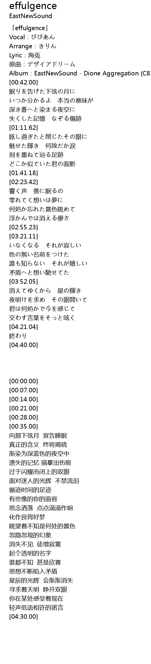 | [00:00.00] | 「effulgence」 |
