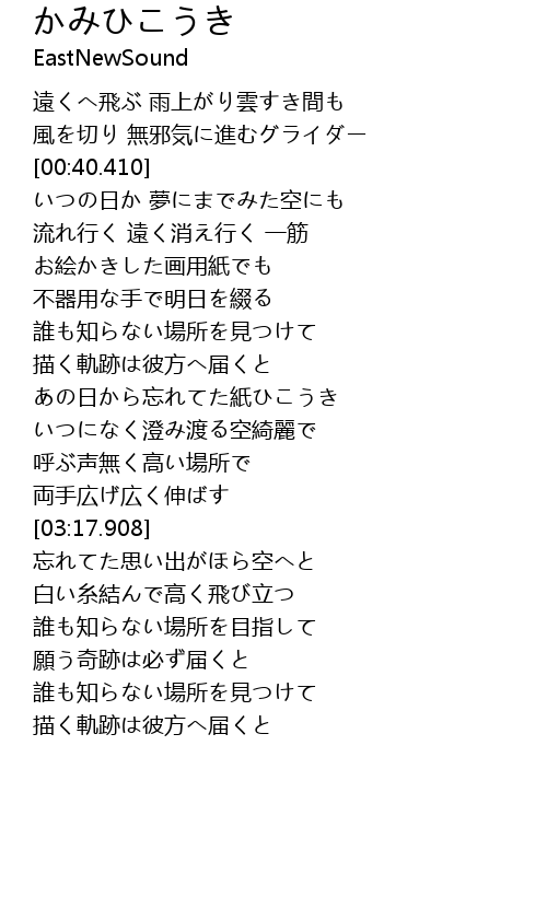 | [02:26.226] | あの日から忘れてた紙ひこうき |