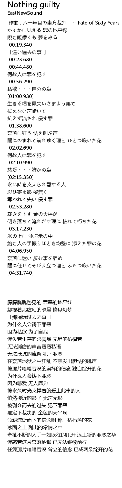 | [00:00.00] | 作曲 : 六十年目の東方裁判 ~ Fate of Sixty Years |