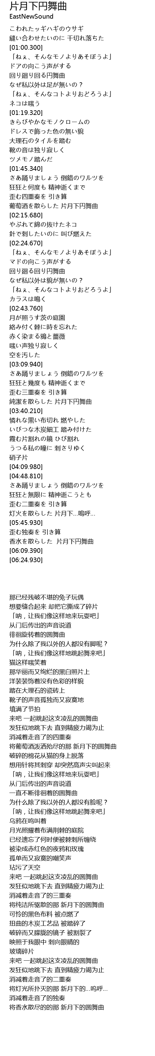 | [03:32.540] | 純潔を散らした 片月下円舞曲 |