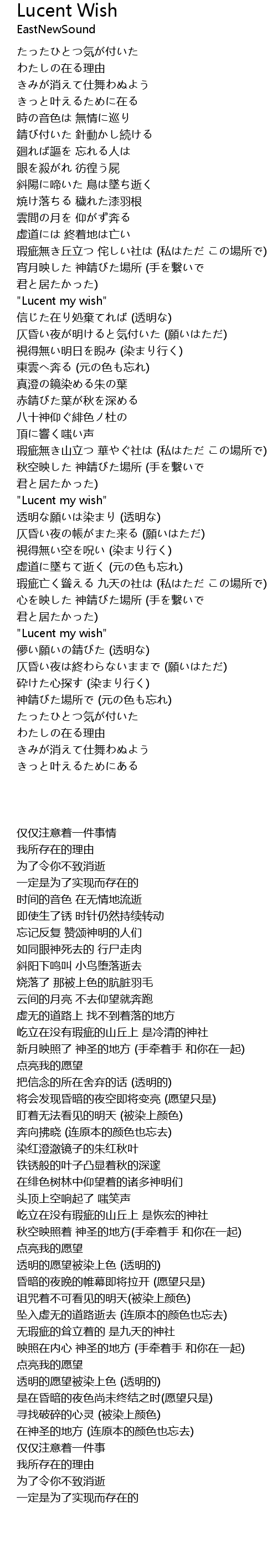 | [02:20.520] | "Lucent my wish" |