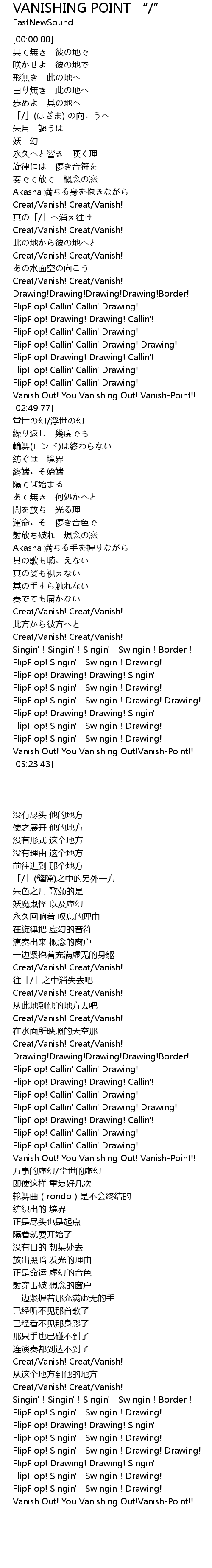 | [04:44.50] | Creat/Vanish! Creat/Vanish! |