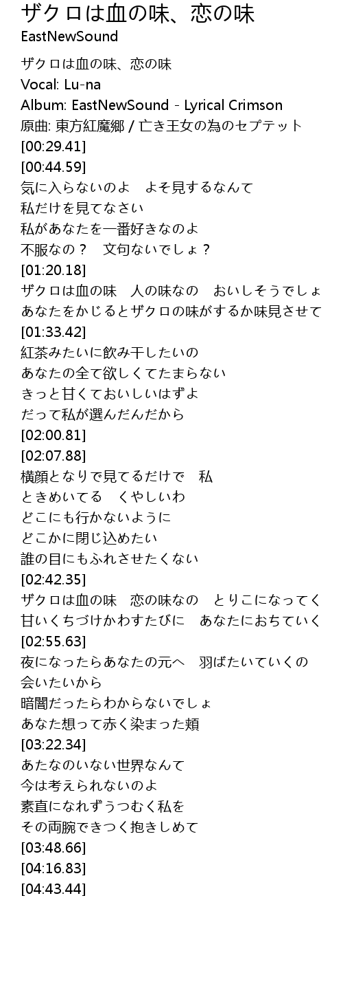 | [00:02.02] | ザクロは血の味、恋の味 |