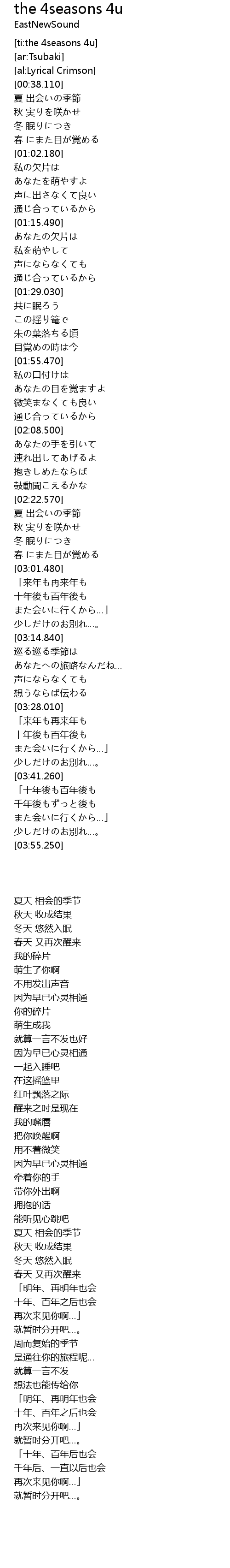 | [03:32.100] | shí nián hòu bǎi nián hòu |