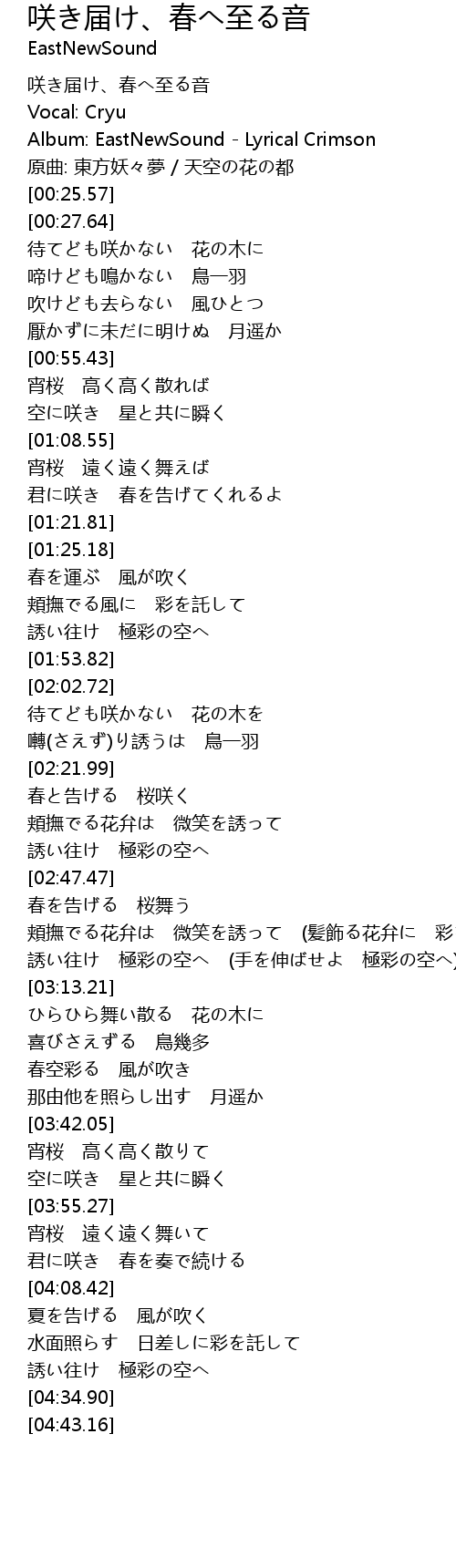 | [00:20.12] | 原曲: 東方妖々夢 / 天空の花の都 |
