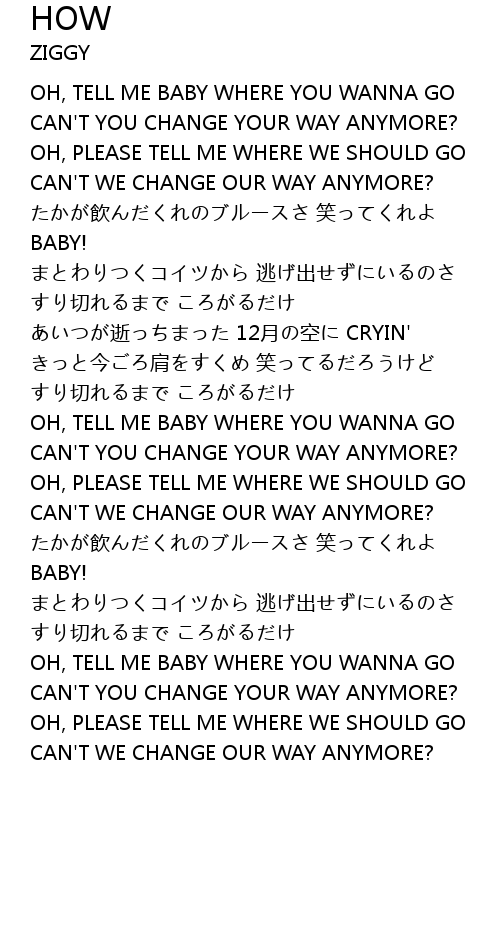 | OH, TELL ME BABY WHERE YOU WANNA GO | |