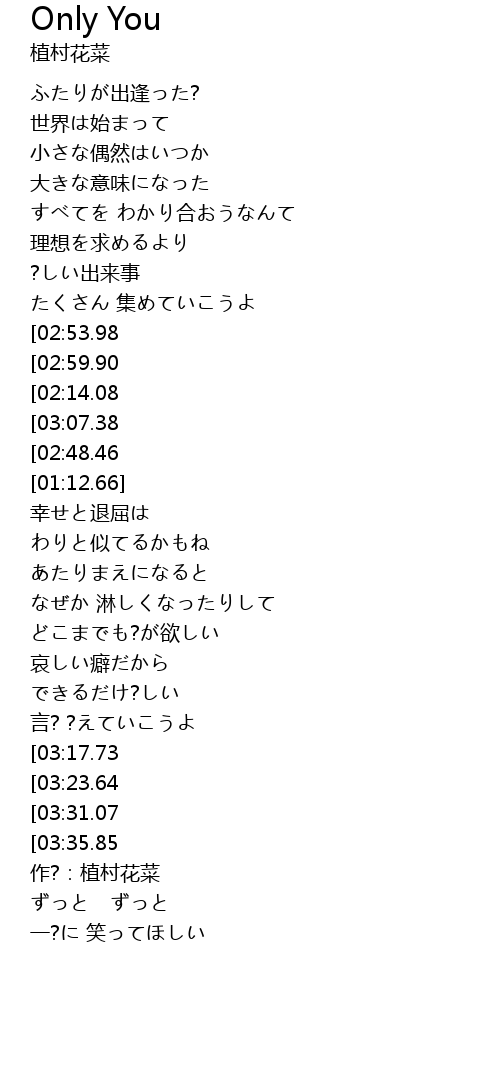 | [01:07.74][02:48.46][03:12.16] | Only you can save me |