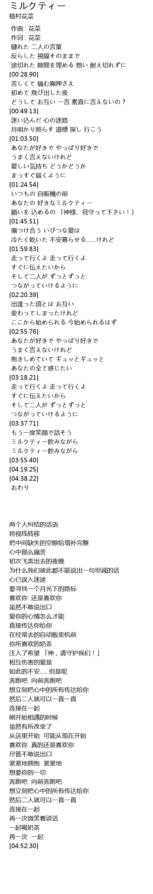 | [03:42.83] | ミルクティー飲みながら |