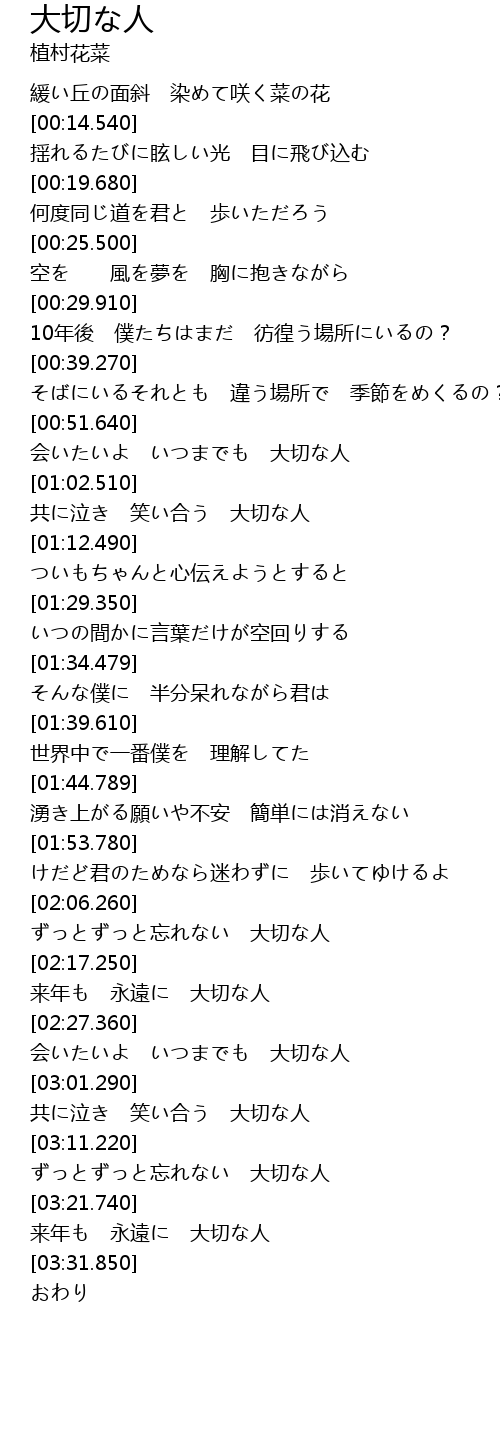 | [03:14.900] | ずっとずっと忘れない 大切な人 |