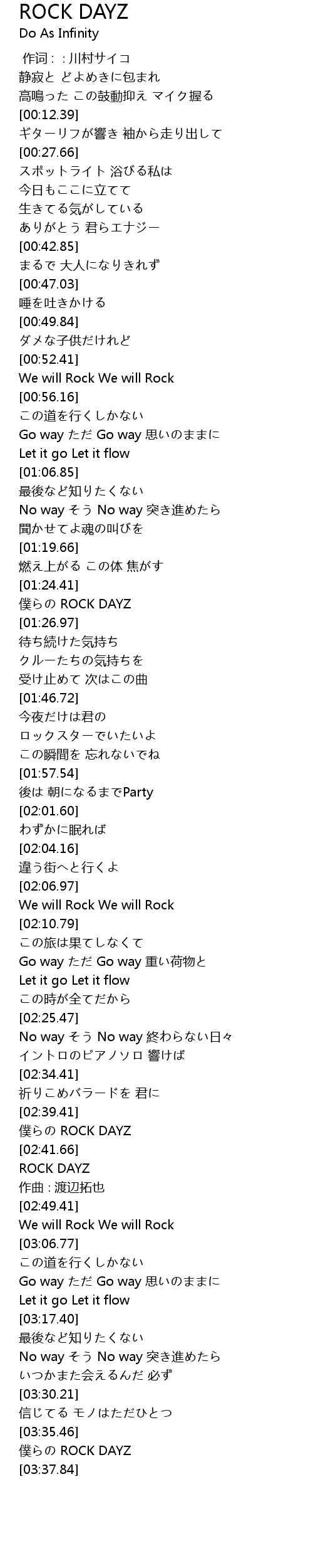 | [02:42.54] | ROCK DAYZ |