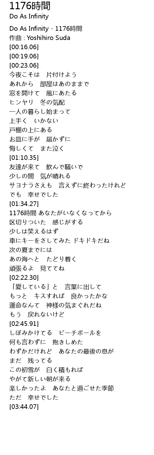| [00:01.06] | Do As Infinity - 1176時間 |
