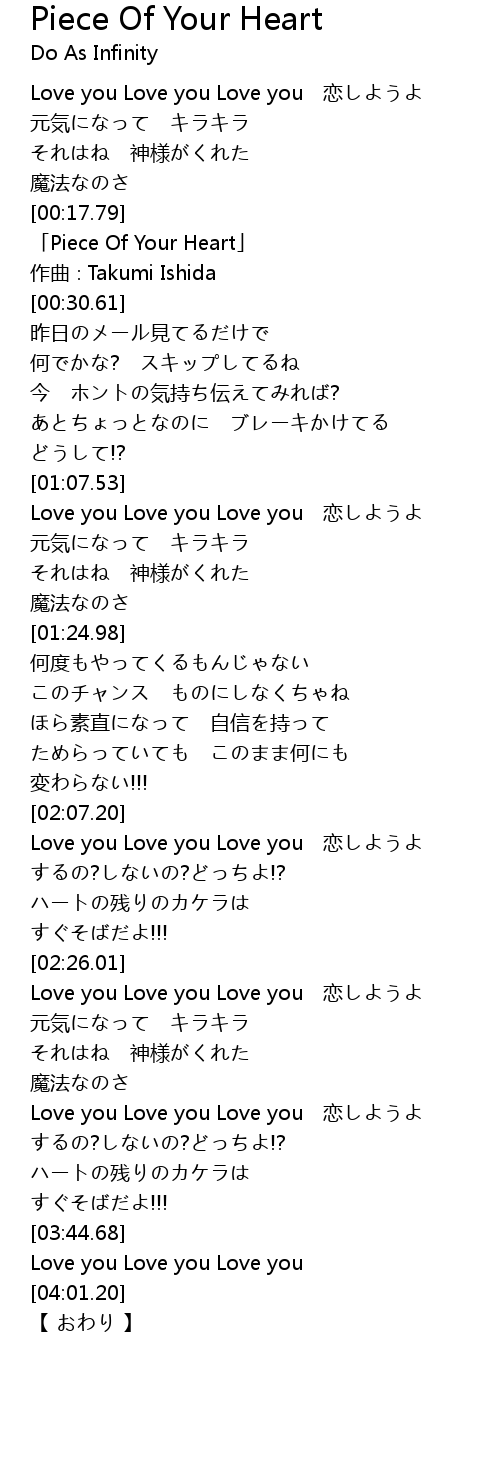 | [00:20.61] | 「Piece Of Your Heart」 |