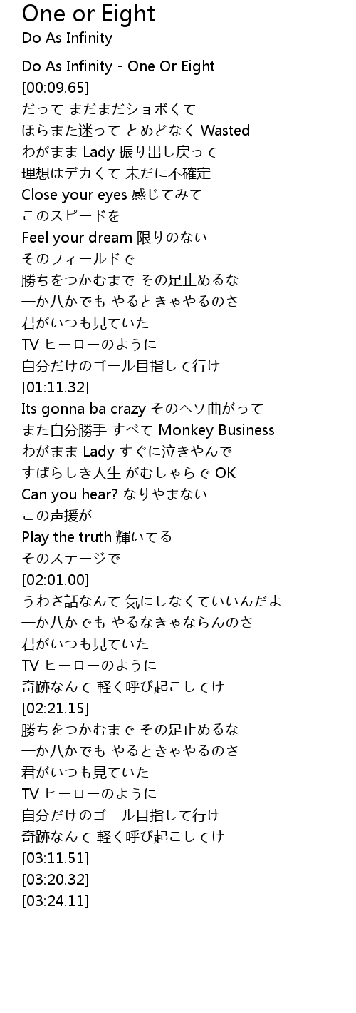 | [00:00.00] | Do As Infinity - One Or Eight |