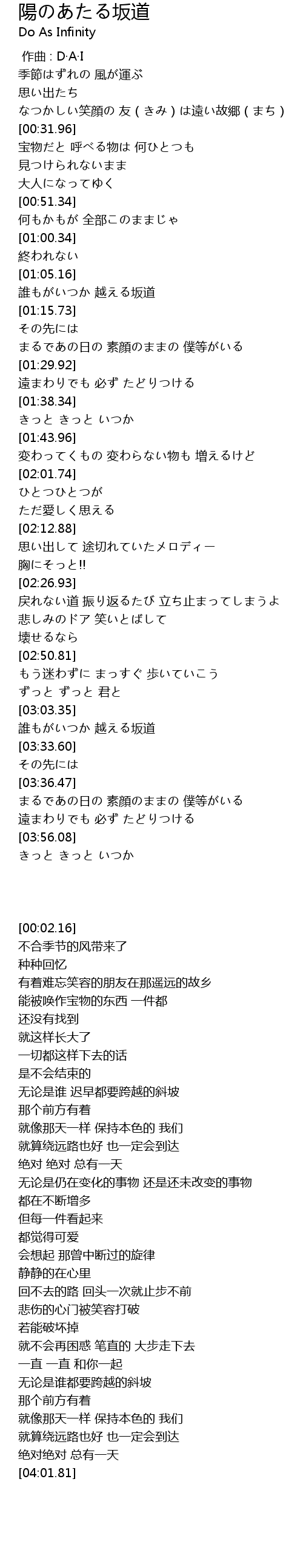 | [03:28.60] | 誰もがいつか 越える坂道 |