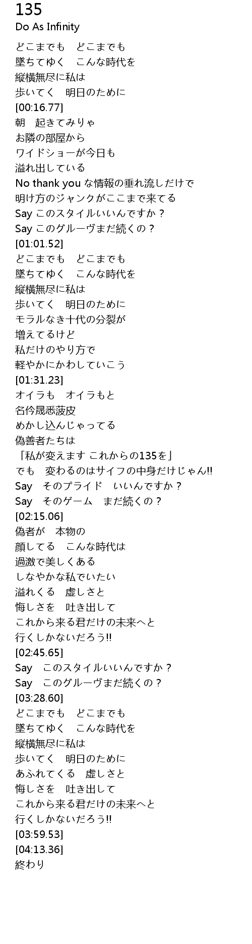 | [00:40.00] | No thank you な情報の垂れ流しだけで |