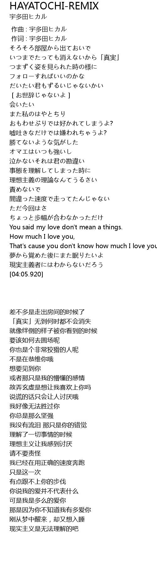 | [00:01.00] | 作词 : 宇多田ヒカル |