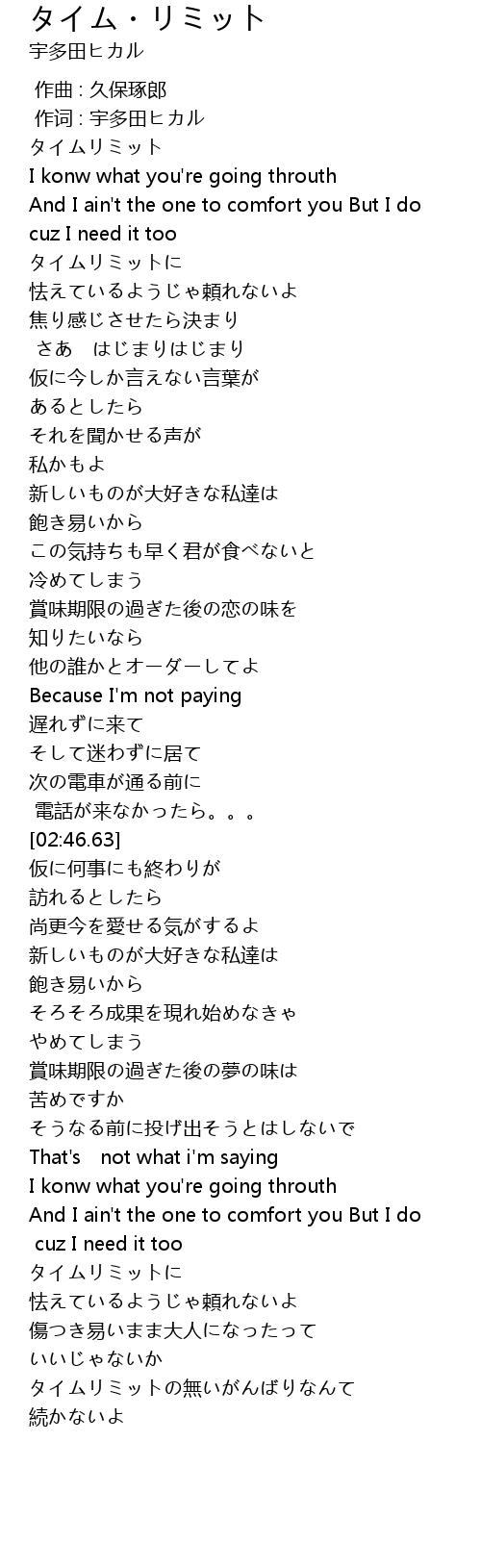 | [00:00.685] | 作词 : 宇多田ヒカル |