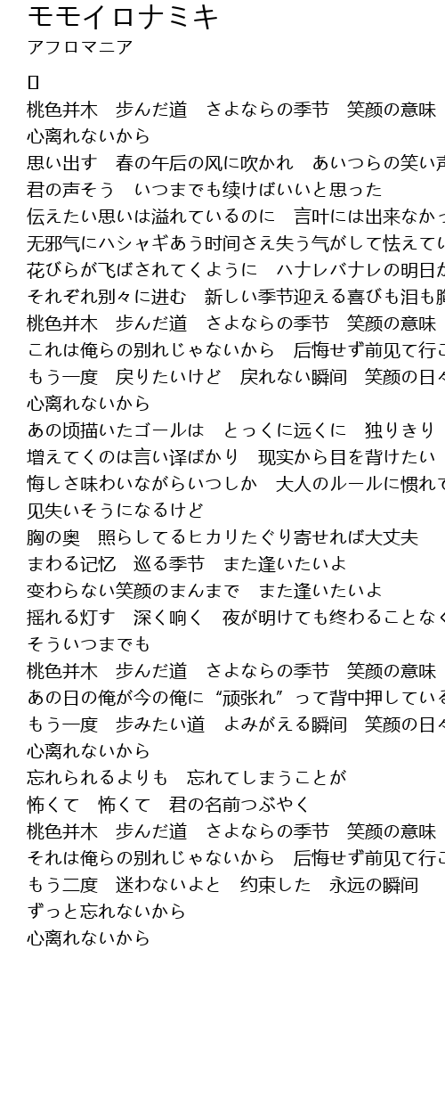 | 桃色并木 步んだ道 さよならの季节 笑颜の意味 | |