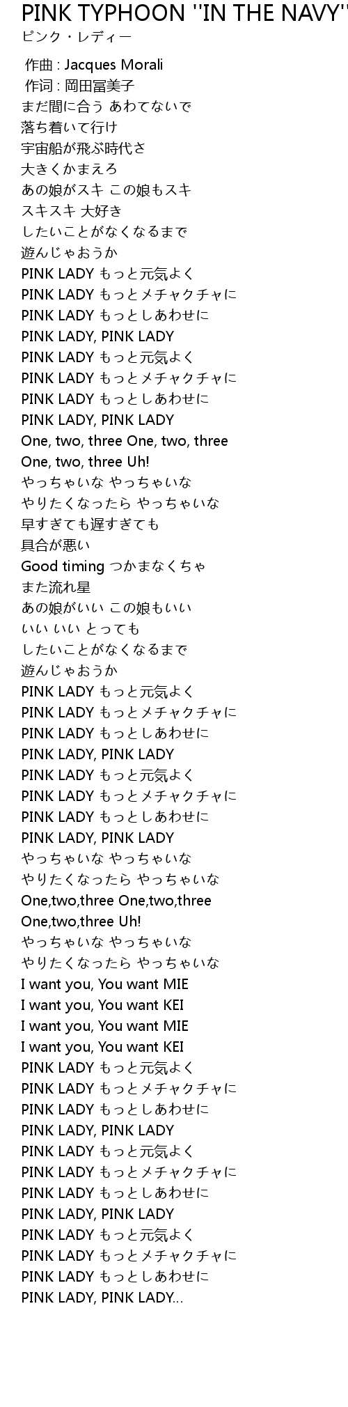 | Song | PINK TYPHOON ''IN THE NAVY'' |
