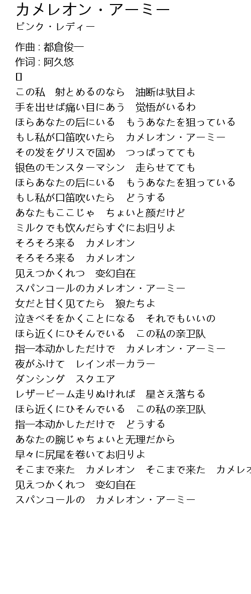 | もし私が口笛吹いたら カメレオン・アーミー | |
