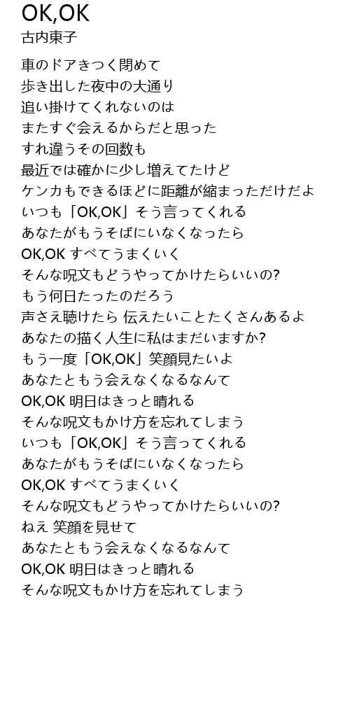 | もう一度「OK,OK」笑顔見たいよ | |