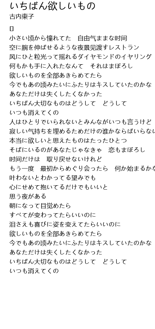 | Song | いちばん欲しいもの |