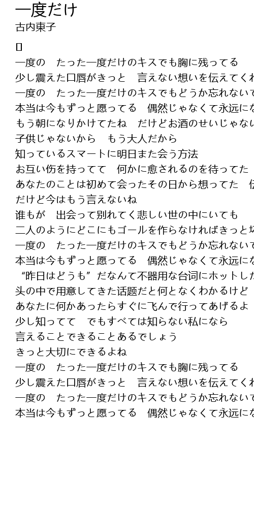 | 一度の たった一度だけのキスでも胸に残ってる | |