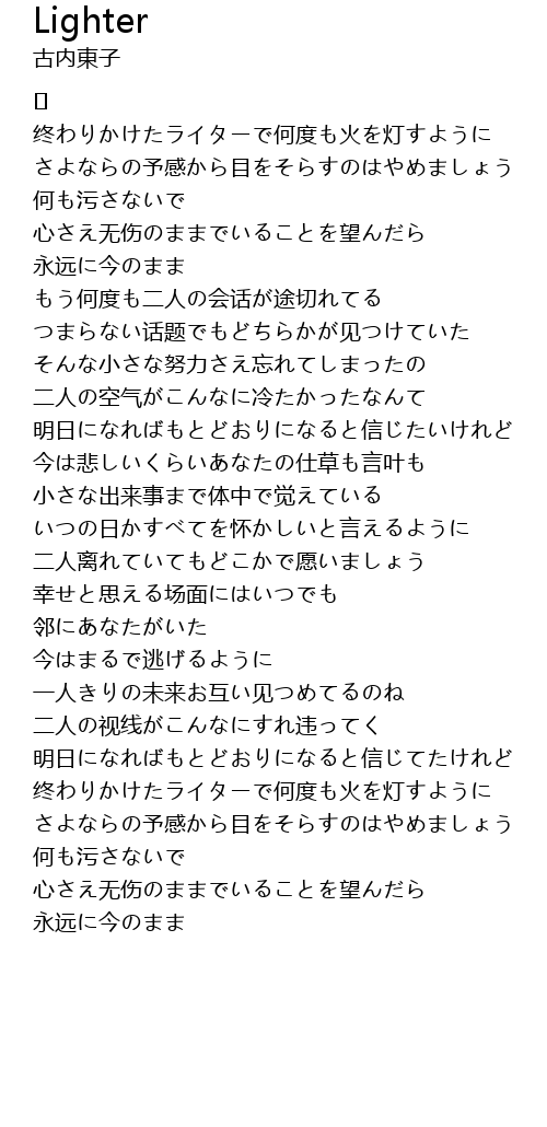 | 终わりかけたライターで何度も火を灯すように | |