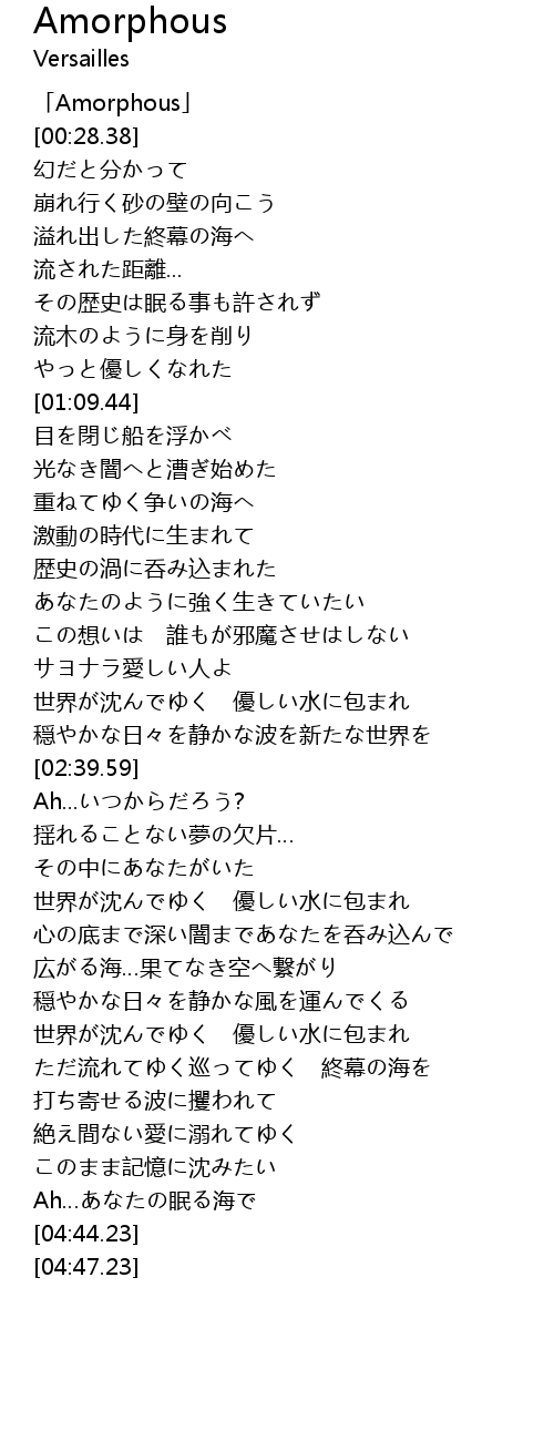 | [00:01.38] | 「Amorphous」 |