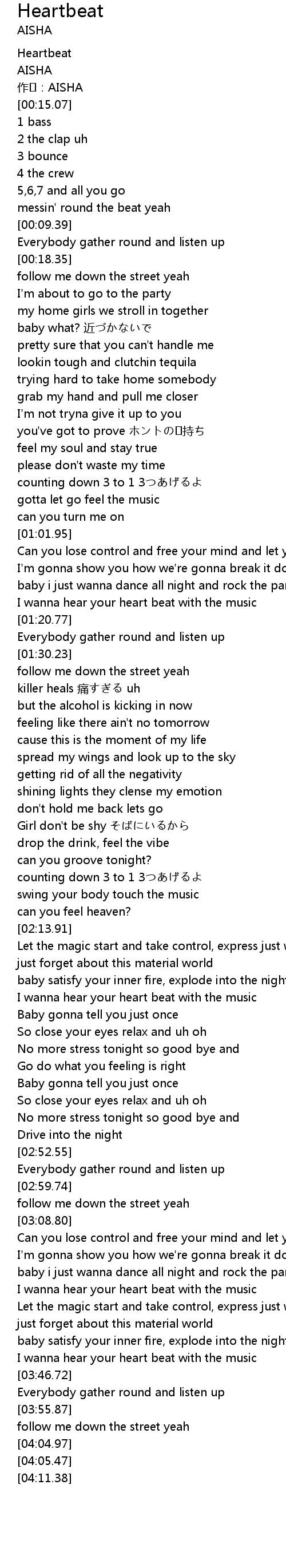 | [03:41.60] | I wanna hear your heart beat with the music |