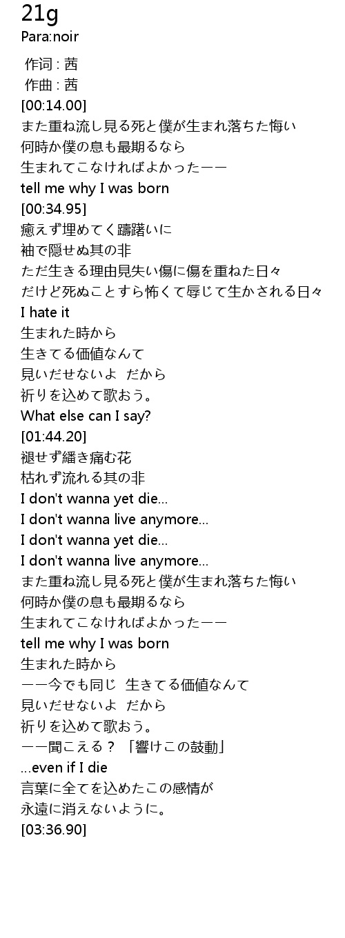 | [03:11.82] | ーー今でも同じ 生きてる価値なんて |