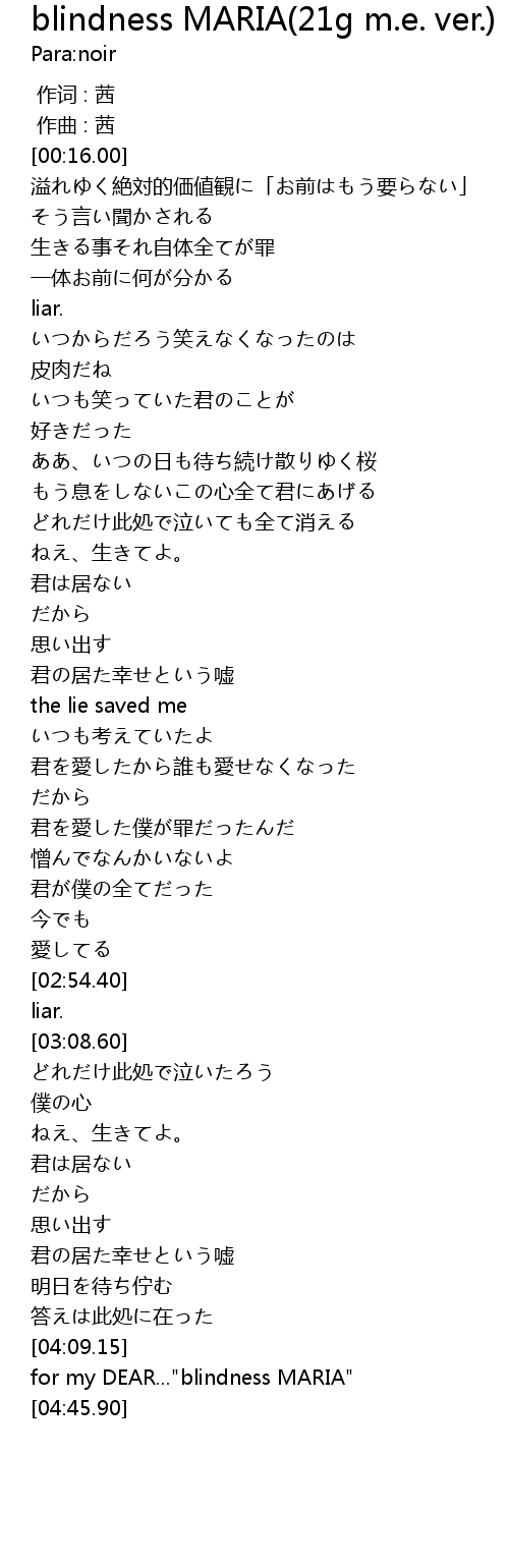 | [04:20.00] | for my DEAR..."blindness MARIA" |