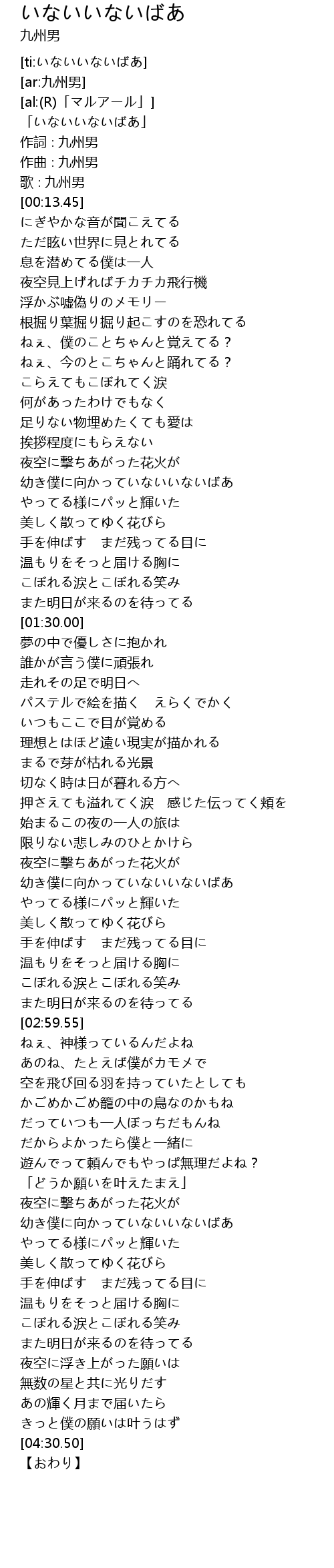 | [02:33.15] | 幼き僕に向かっていないいないばあ |