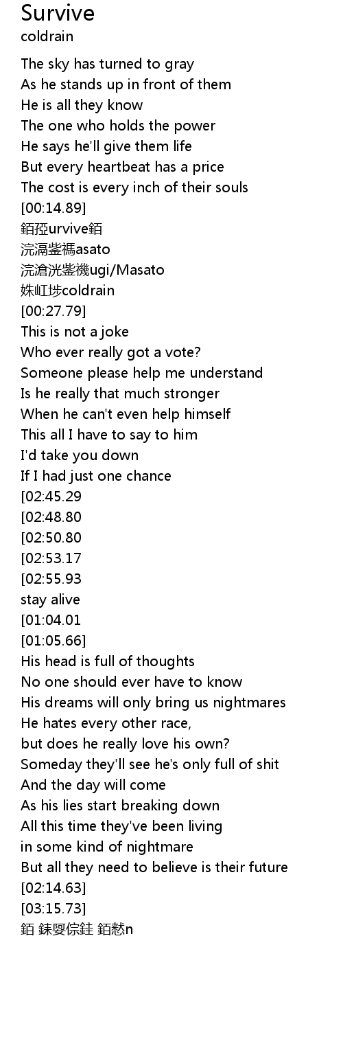 | [03:14.15][01:04.01] | Now Survive |