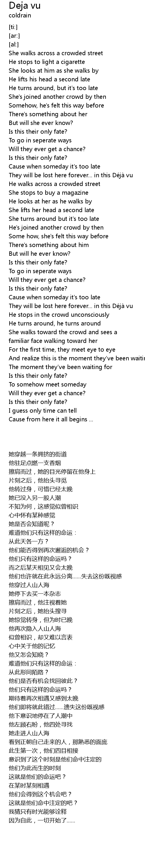 | [02:34.23] | They will be lost here forever... in this De ja vu |
