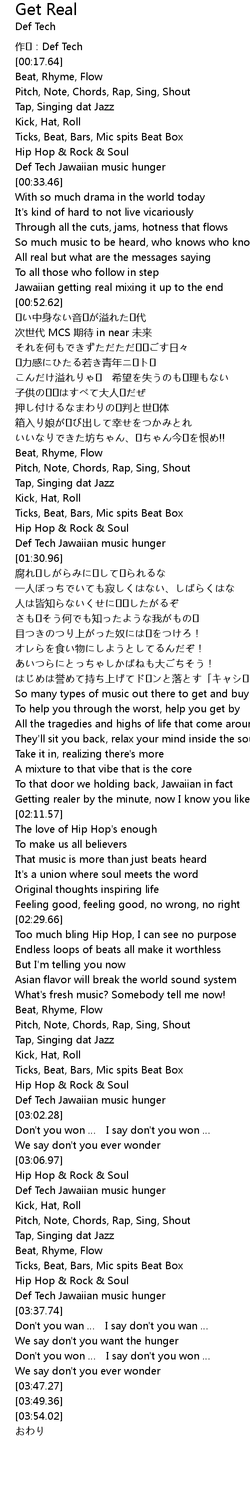 | [03:34.86] | Def Tech Jawaiian music hunger |
