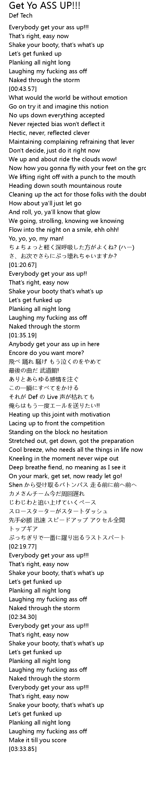 | [03:18.63] | Everybody get your ass up!!! |